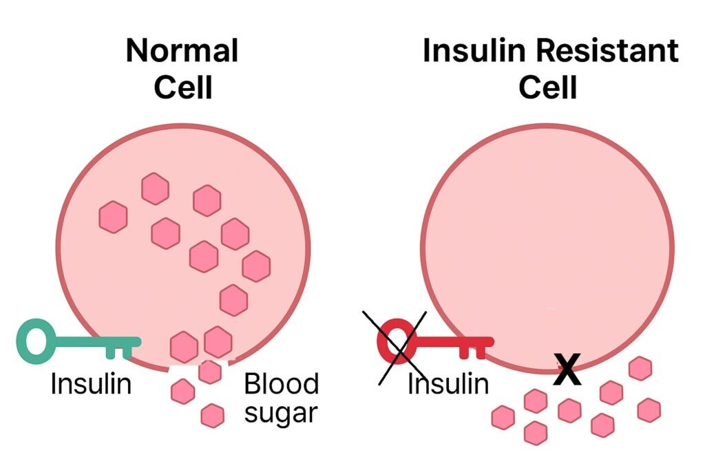 Insulin resistance happens when your cells stop responding properly to insulin’s key. It’s like the lock on the door has gotten rusty — the key still fits, but the door won’t open.